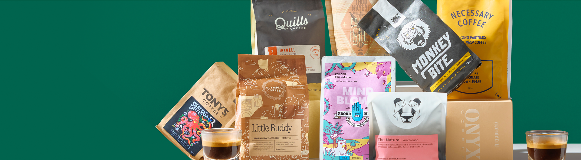 Curated local and national favorites with over 40+ roasters and growing.